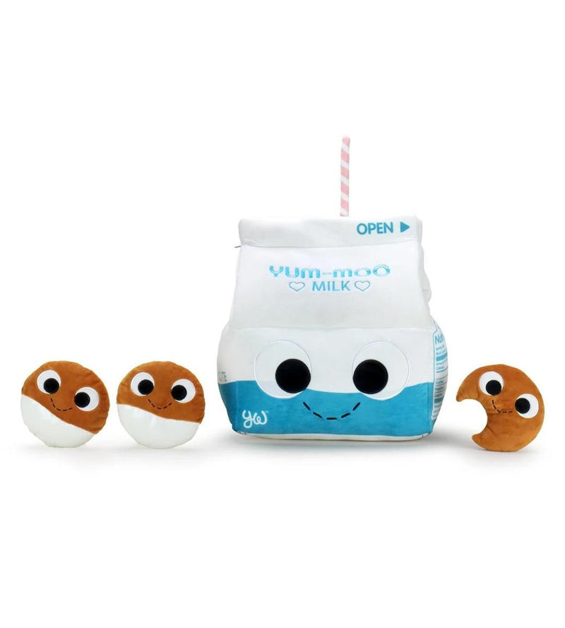 ¡Parece que un enorme ladrillo de leche está en parte acompañado de estas pequeñas galletas! Un refrigerio exitoso desde cualquier punto de vista y un grupo alegre de lindos animales de peluche para transportar a todas partes contigo.