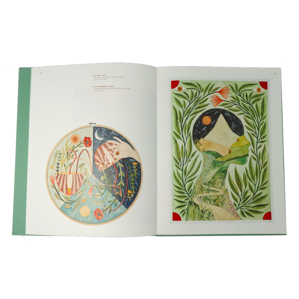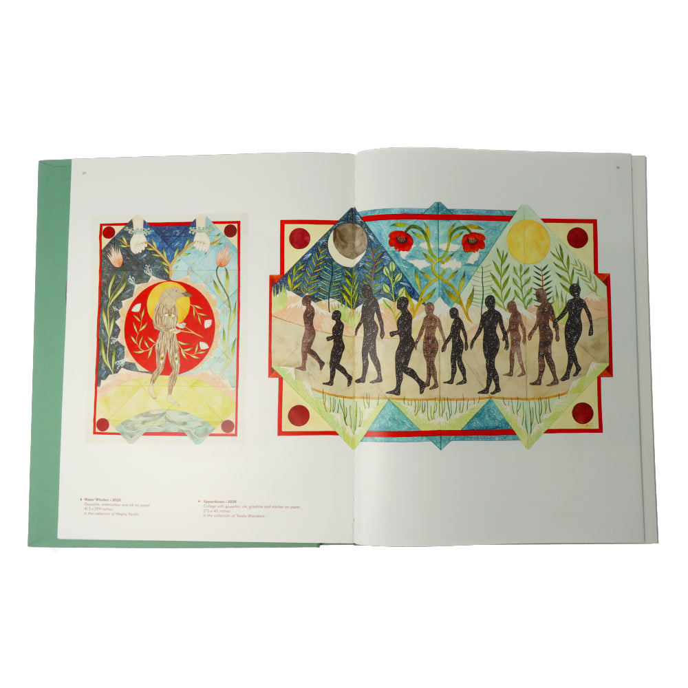 Rithika Merchant, geboren in 1986, woont tussen Bombay en Barcelona. Beoefenen aquarel, collage en vouwen, ze put uit de bronnen van Indiase tribale kunst, mugal miniaturen, botanische illustratie of zelfs populaire kunst van de 17e eeuw om syncretische beelden te maken rond de fundamentele concepten van mythologie en traditionele verhalen.