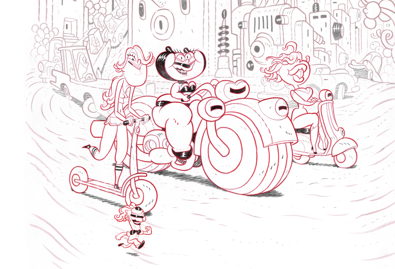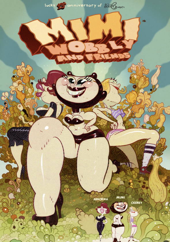 The rubenesque, fluffy character of Mimi Wobbly first came about when Dave Cooper was commissioned to create an animated music video for the world-renowned power trio Danko Jones!
